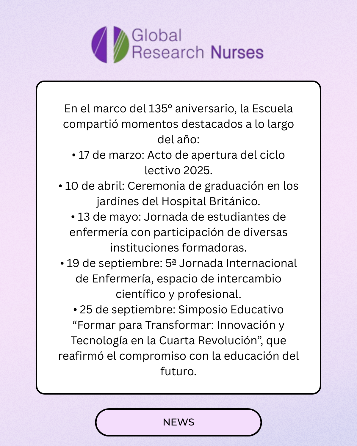 Global Research Nurses joins in this celebration and congratulates the British Hospital School of Nursing for its outstanding history and its renewed commitment to educational innovation, the integration of technology, online learning, and the creation of new areas of specialization. Because honoring history is also shaping the future.