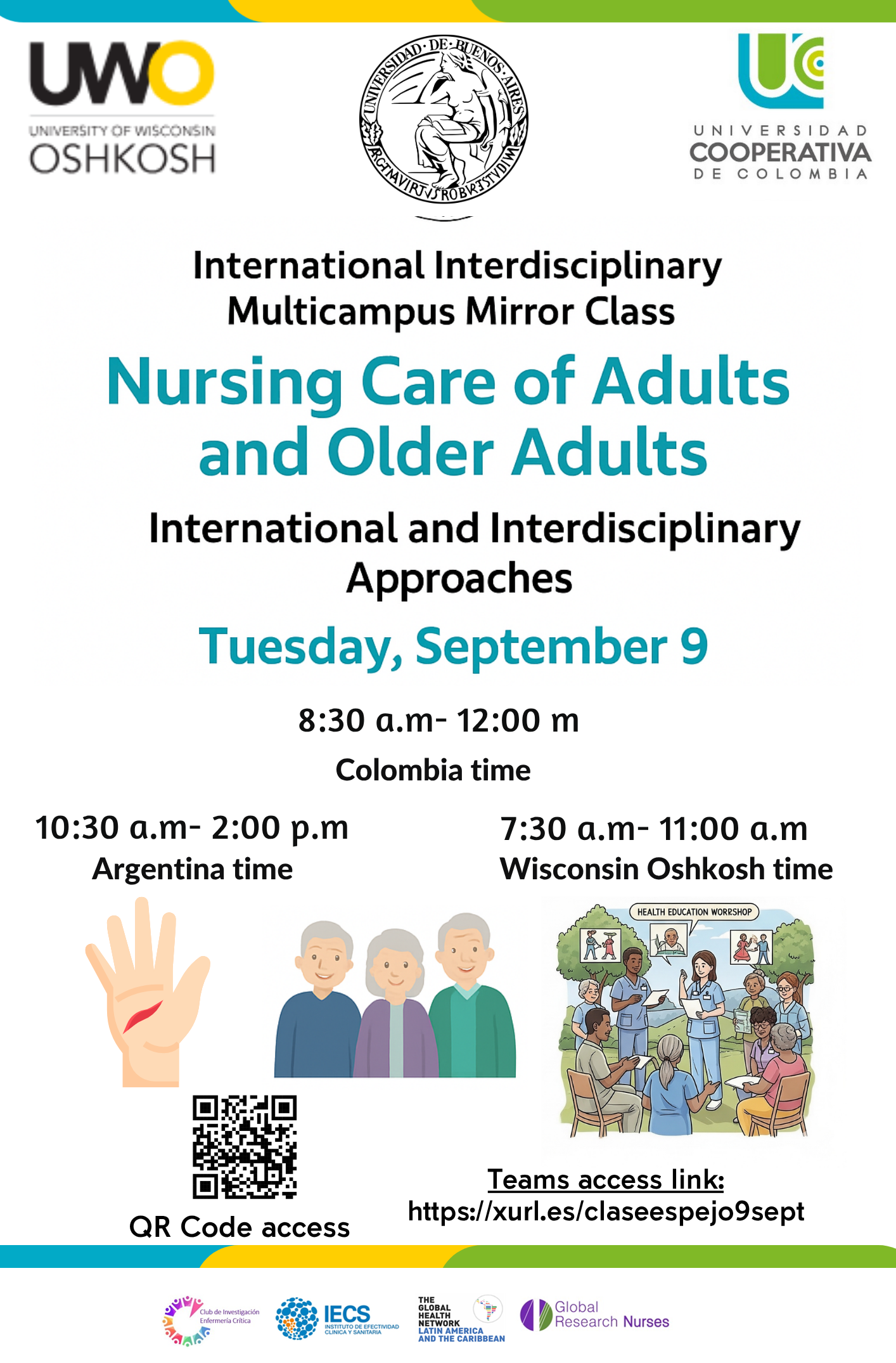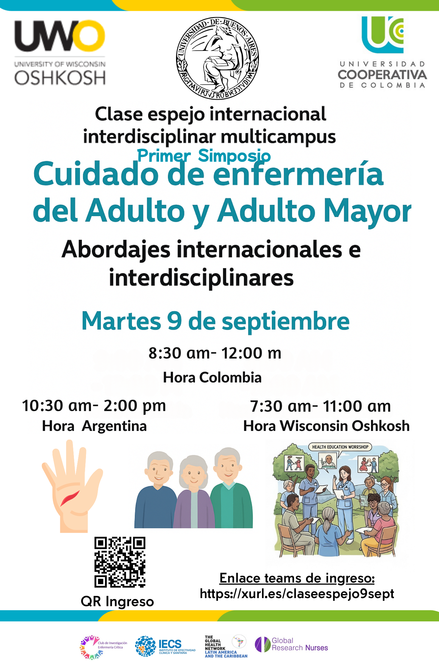 El I Simposio del Cuidado al Adulto y Adulto Mayor se destaca un espacio académico internacional e interdisciplinario que reúne a instituciones y profesionales de Colombia, Argentina y EE.UU. para promover el intercambio de conocimientos, experiencias y buenas prácticas en el cuidado integral de las personas adultas y mayores.