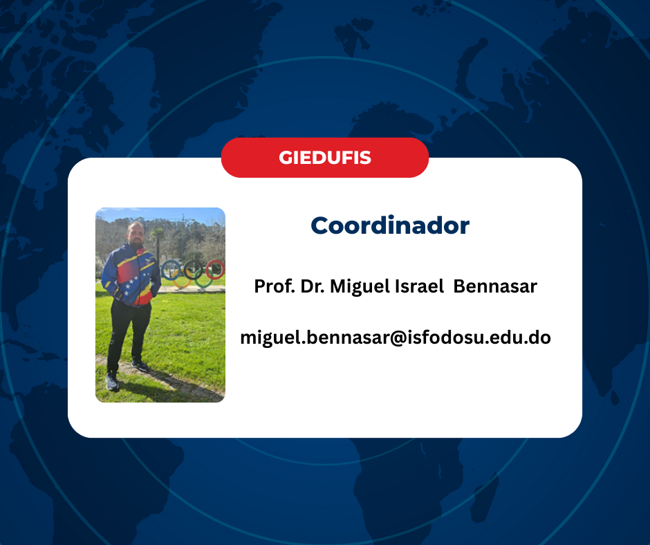 El Grupo de Investigación Educación Física y Salud (GIEDUFIS), ISFODOSU, Recinto Luis Napoleón Núñez Molina, representa el compromiso articulado de docentes y estudiantes por fortalecer la investigación educativa y científica dentro de nuestra universidad, cuya misión es impulsar la generación de conocimientos críticos, reflexivos, innovadores y transformadores, partiendo de la praxis pedagógica y del análisis sistemático de la realidad educativa. El grupo desarrolla espacios de intercambio y producción académica orientados a identificar, valorar, sistematizar, aplicar y difundir experiencias que aporten soluciones pertinentes a los desafíos educativos de la República Dominicana.